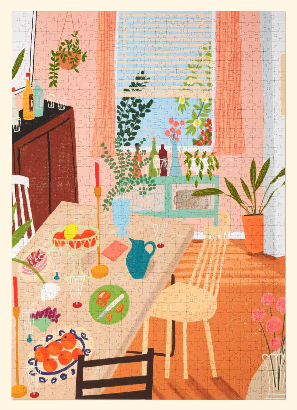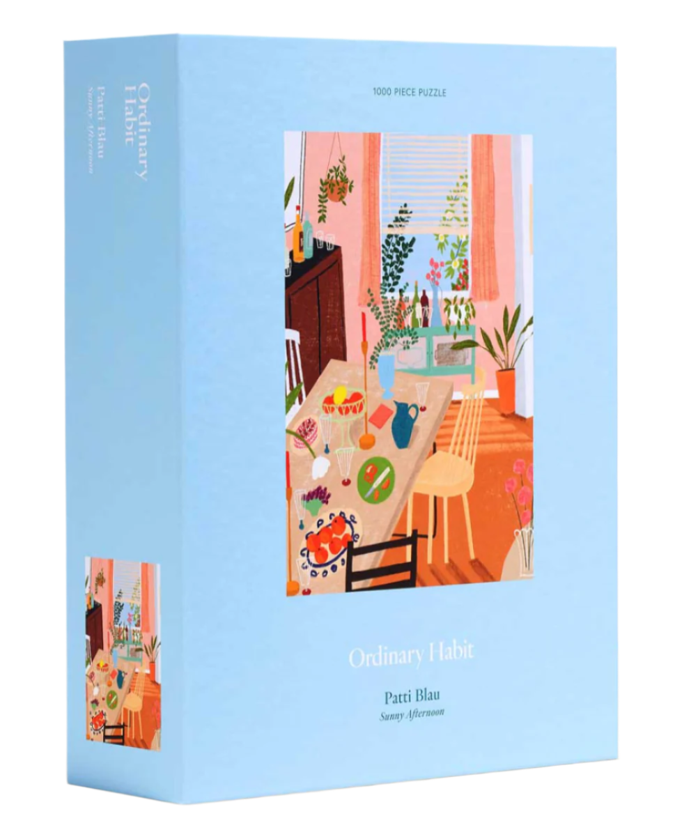 Sunny Afternoon by Patti Blau sets a peaceful scene that we’d love to dive right into. A bountiful table, overflows with snacks, cake and colorful fruit. Watch this vivid interior come to life as you sort and put together this challenging 1000 piece puzzle.