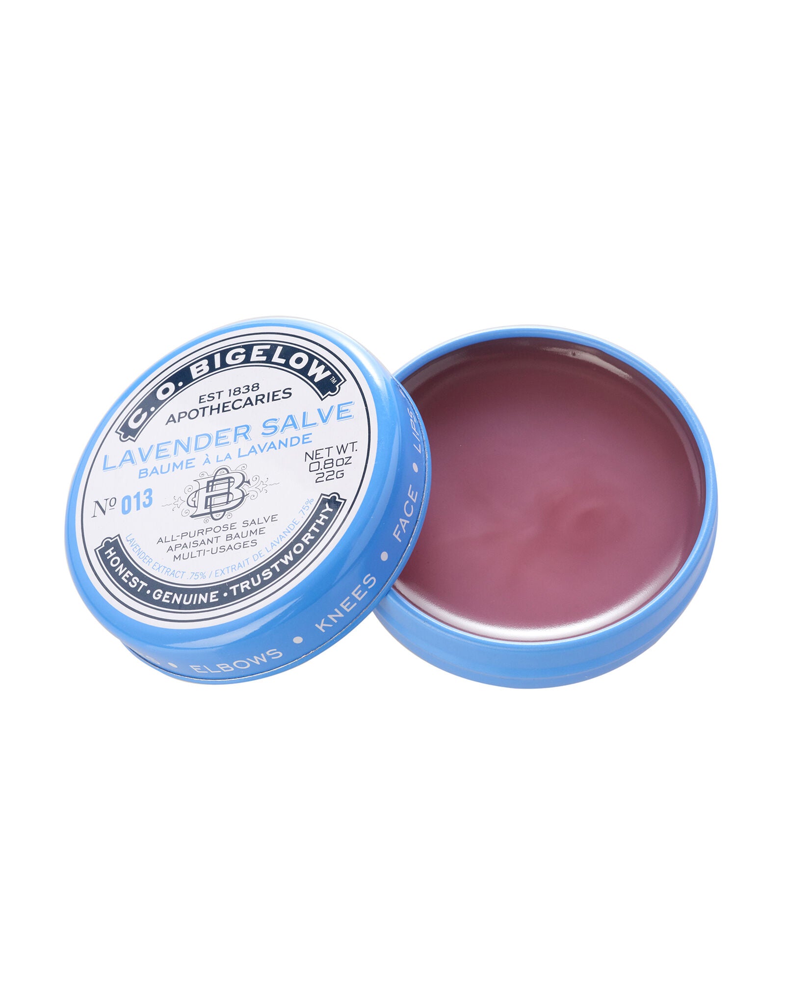 No. 013 Lavender Extract 0.75% C.O. Bigelow's Lavender Salve has been a favorite since the early days, due to its ability to care for lips and beautify skin. Emulsified with extra-soothing lavender extract, which helps ease irritation and condition the skin.