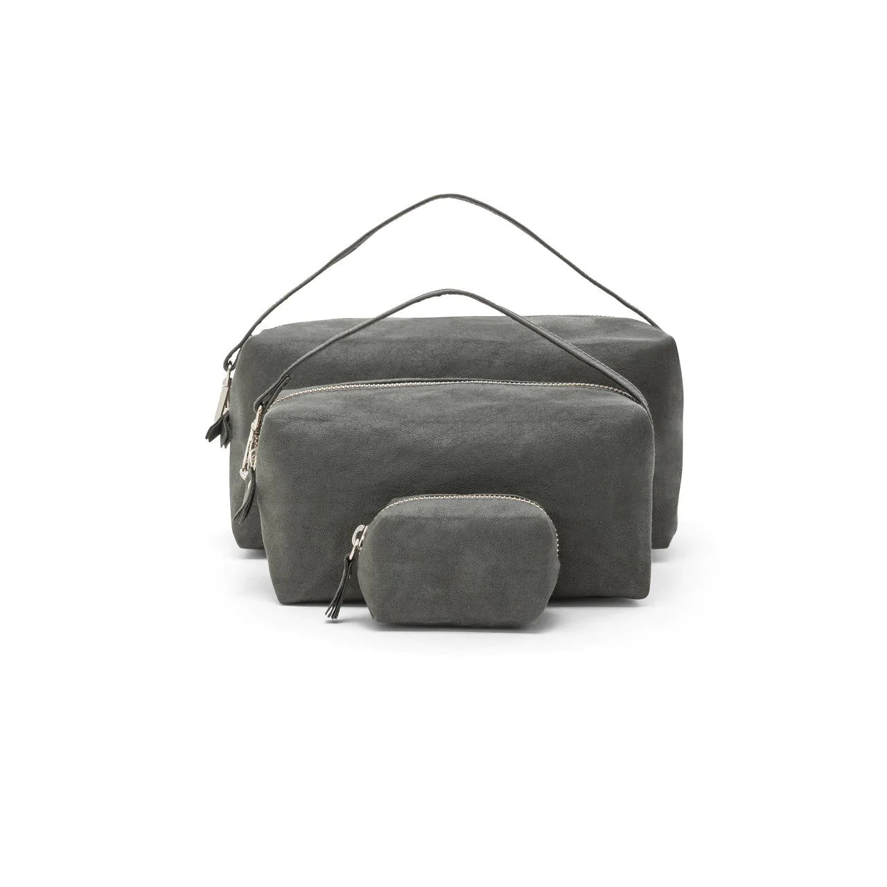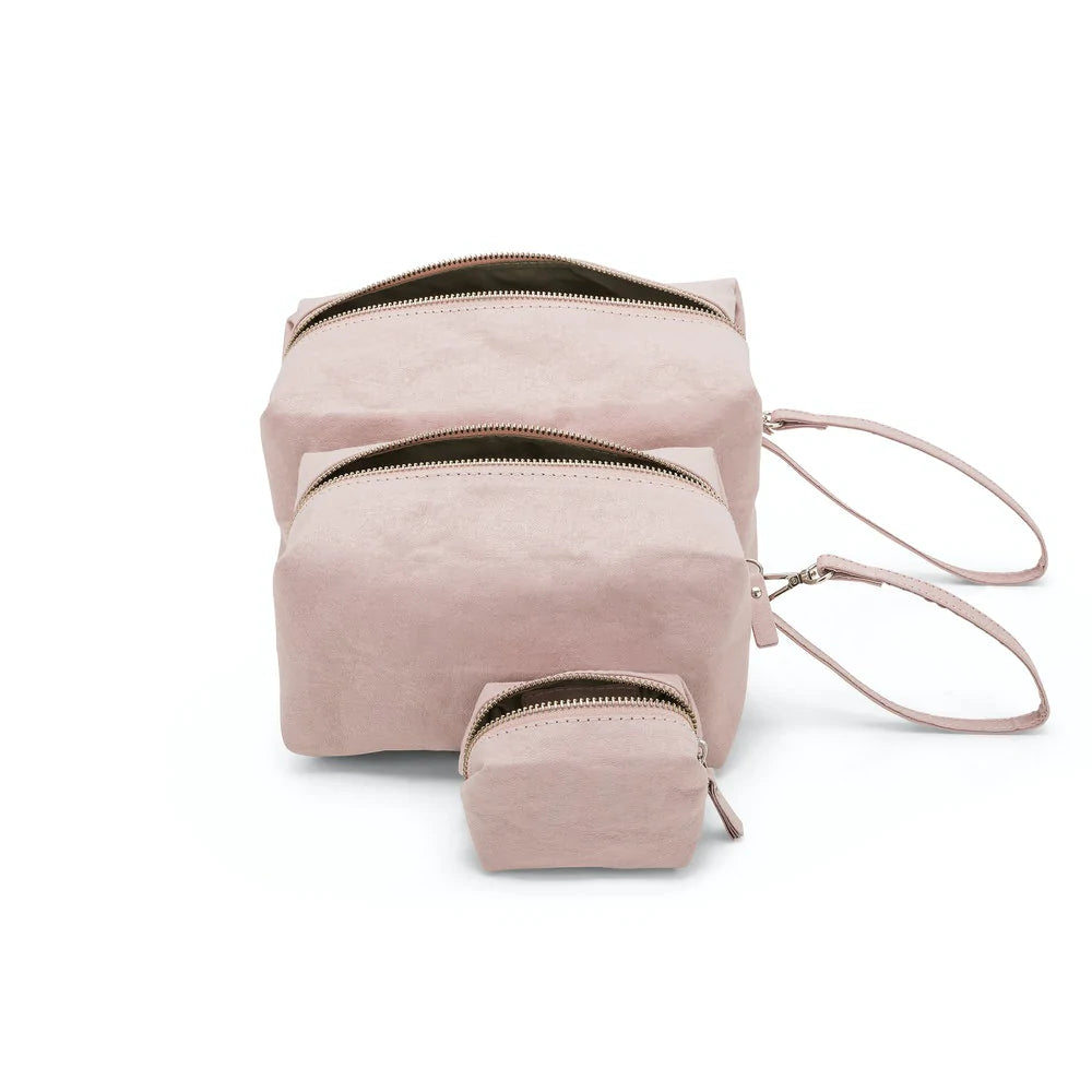 A boxy, yet lightly structured case inspired by Japanese Origami.  Featuring a practical hook as a handle or to hang while traveling. Organization for all of your toiletries, beauty essentials, jewelry, or small tech accessories.