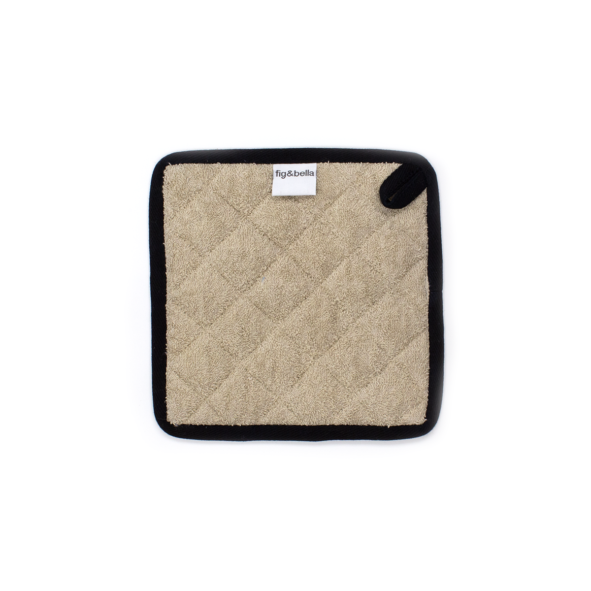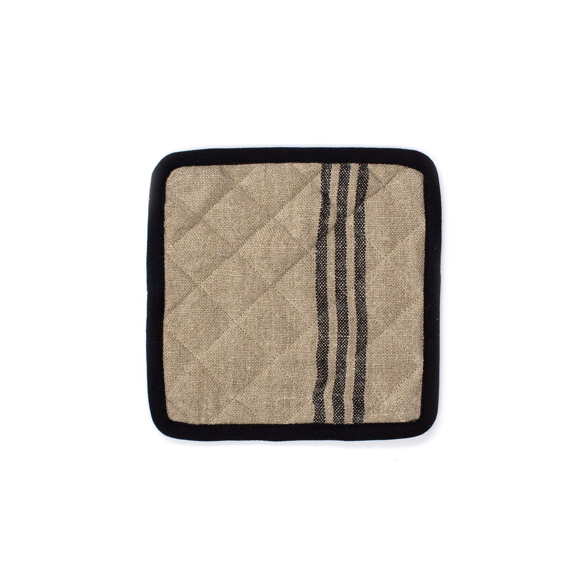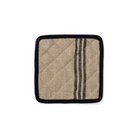 Quilted linen and cotton terry protect hands from hot pots in our natural linen with triple black bar stripes. Hang next to the stove with the nifty little hang-tab. Coordinate with our tea towels, oven mitts, and table runners to complete the look. Sold individually.
