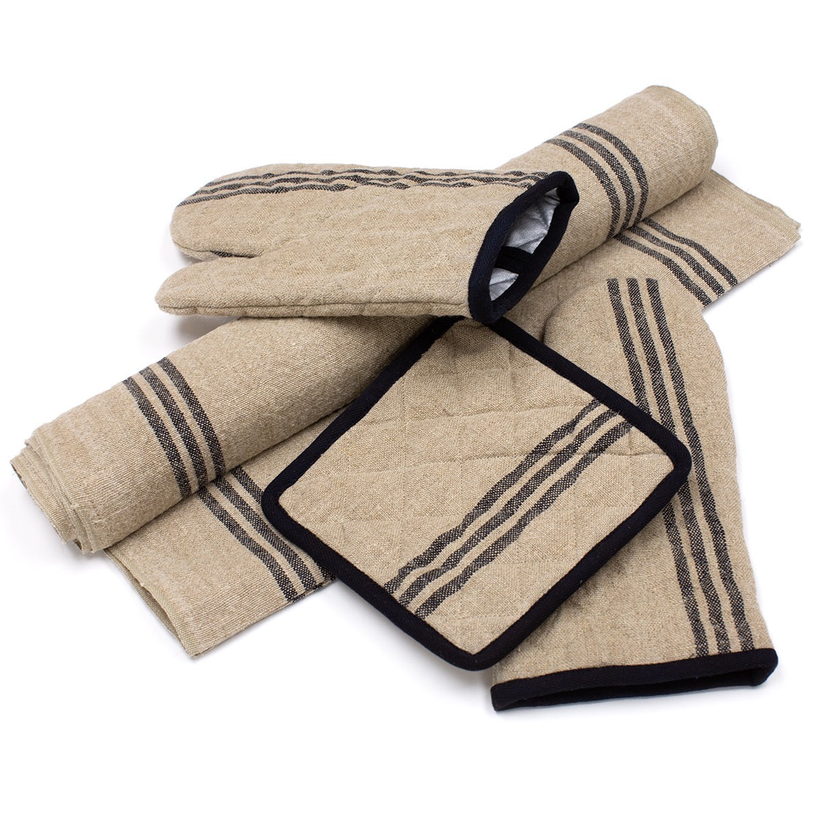 Clean and classic, our country stripe linen table runner with triple bar stripes. Generously sized, it can easily be shortened or left to hang over the table ends. Coordinate with our tea towels, oven mitts, and pot holders to complete the modern country look.