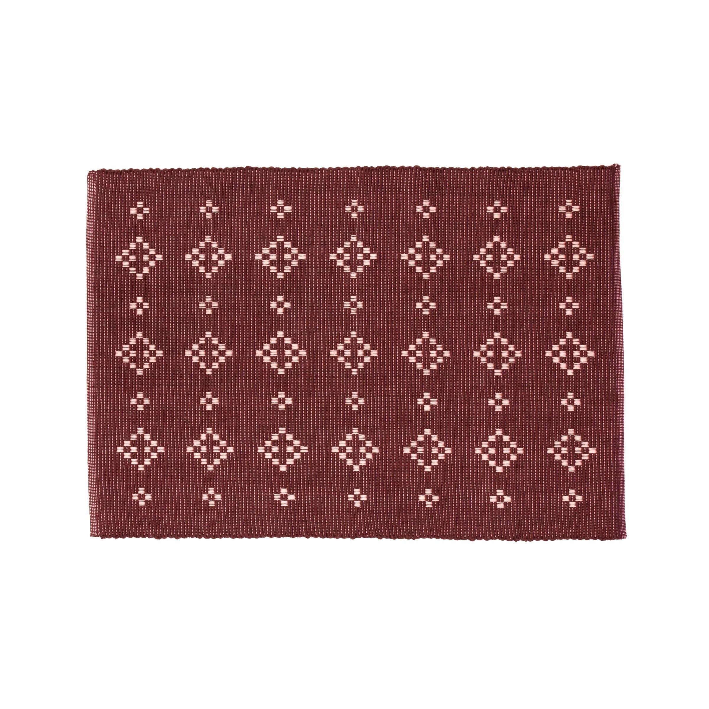 Our Marcel placemat was inspired by embroideries of the Andes. Generously sized at 13" wide and 19" long, it is the perfect accompaniment to any outdoor table-scape. Reverses to strawberry pink mat with burgundy embroidery detail.