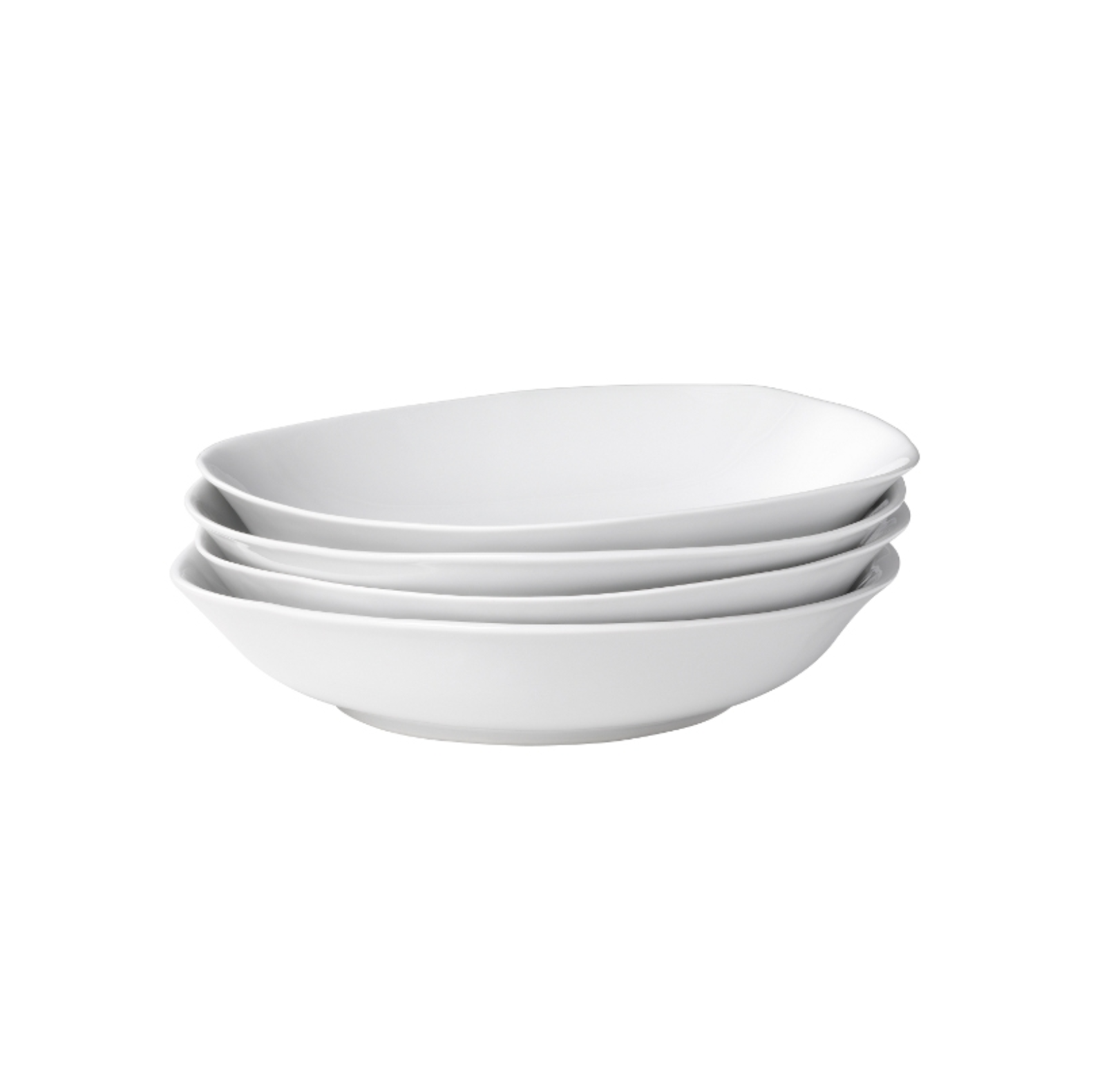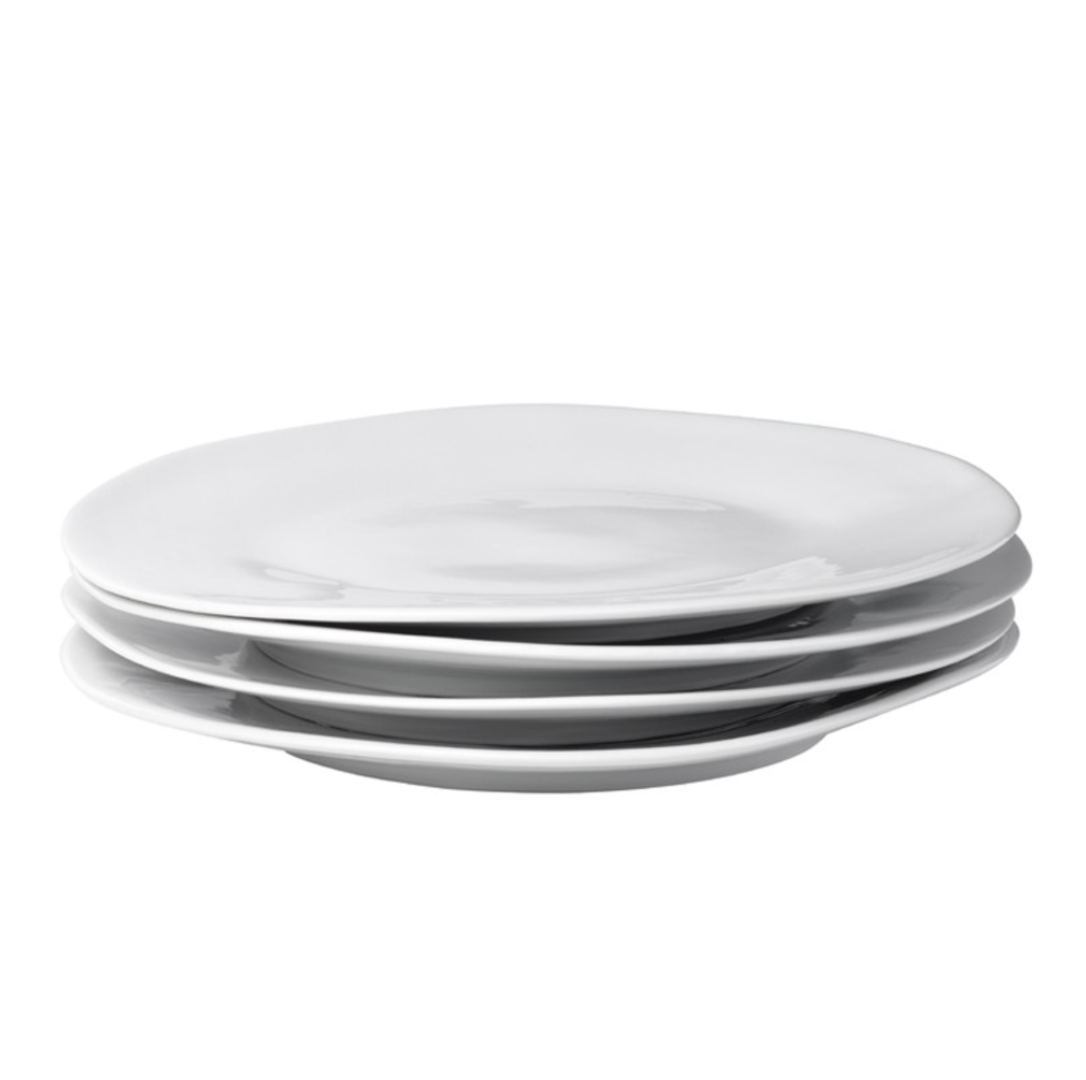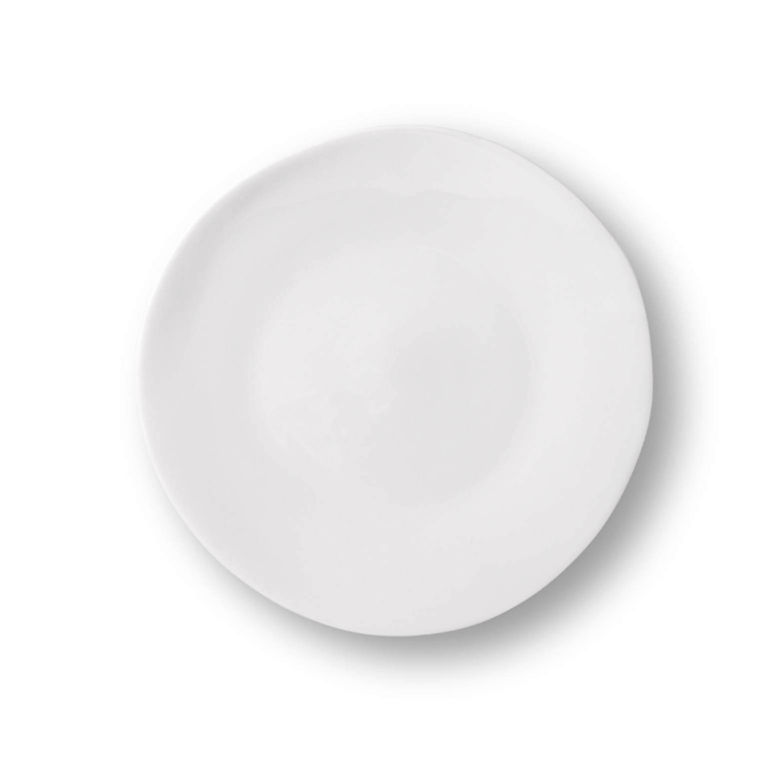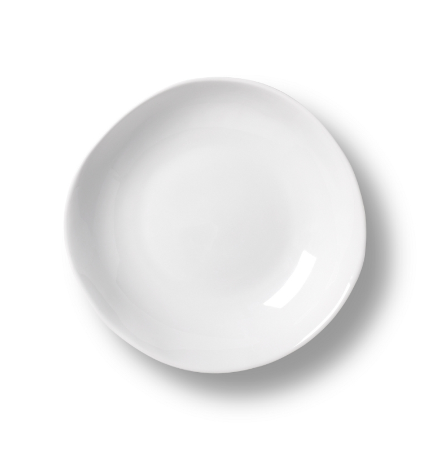 Made of porcelain, these pieces combine solidity and finesse. The plates and dishes are made in France, cast in a traditional method between two plaster molds. Each time they are cast, certain differences may appear, which are the expression of the unique character of each one of these hand-cast items. Their “imperfections” are the sign of their originality and are not considered as flaws.  The forms themselves are irregular.