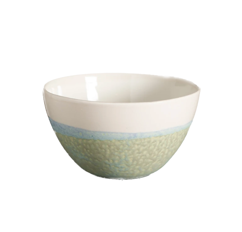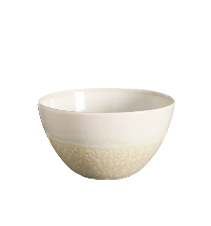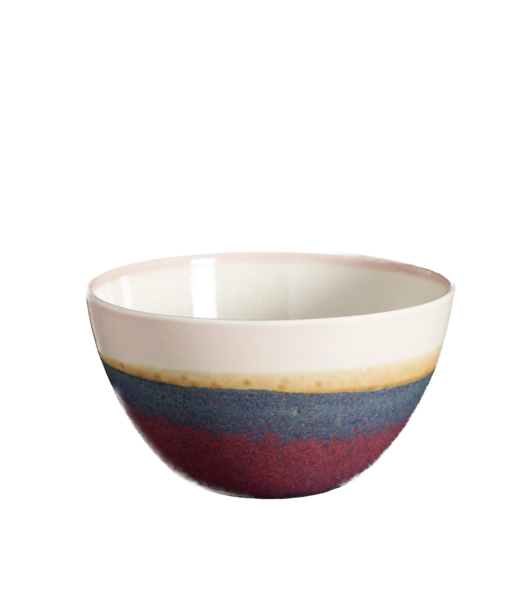 The Pastello bowls introduce a meeting between two glazes giving a third. Here surface and tactility are a key element. The bottom glaze is matte and has structure, while the upper part is glossy. The interplay and overlap between the 2 glazes creates landscape motifs where the narrow meeting gives a sense of horizon. Sold in pairs, each piece is unique.