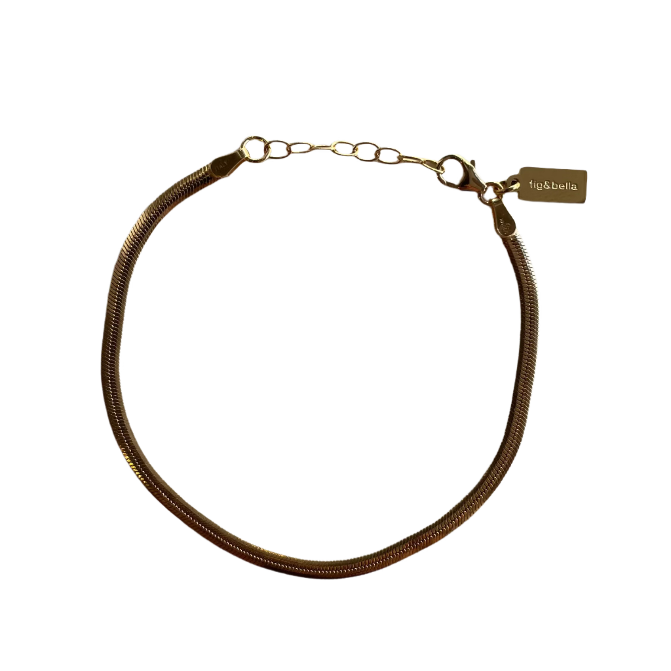 Crafted in Italy from 14k gold fill, this herringbone bracelet exemplifies understated elegance. The refined weave pattern pairs seamlessly with an adjustable extender, ensuring a perfect fit for any wrist. A versatile piece that transcends gender, it's equally at home layered with other delicate chains or worn as a standalone statement of timeless style.
