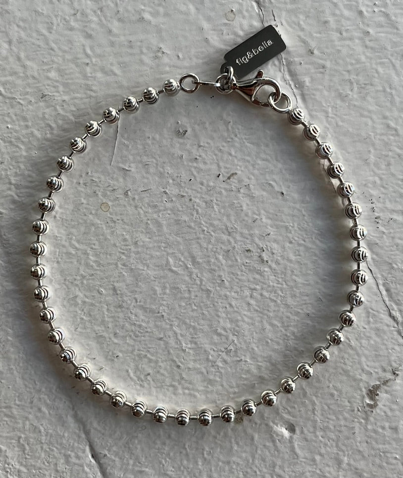 This handcrafted sterling silver bracelet showcases exquisite faceted beads with a shimmering diamond-like brilliance, designed and created in our Hudson Valley studio. At 6.5 inches, it embodies understated elegance and timeless sophistication, seamlessly complementing both everyday wear and special occasions with its refined aesthetic.