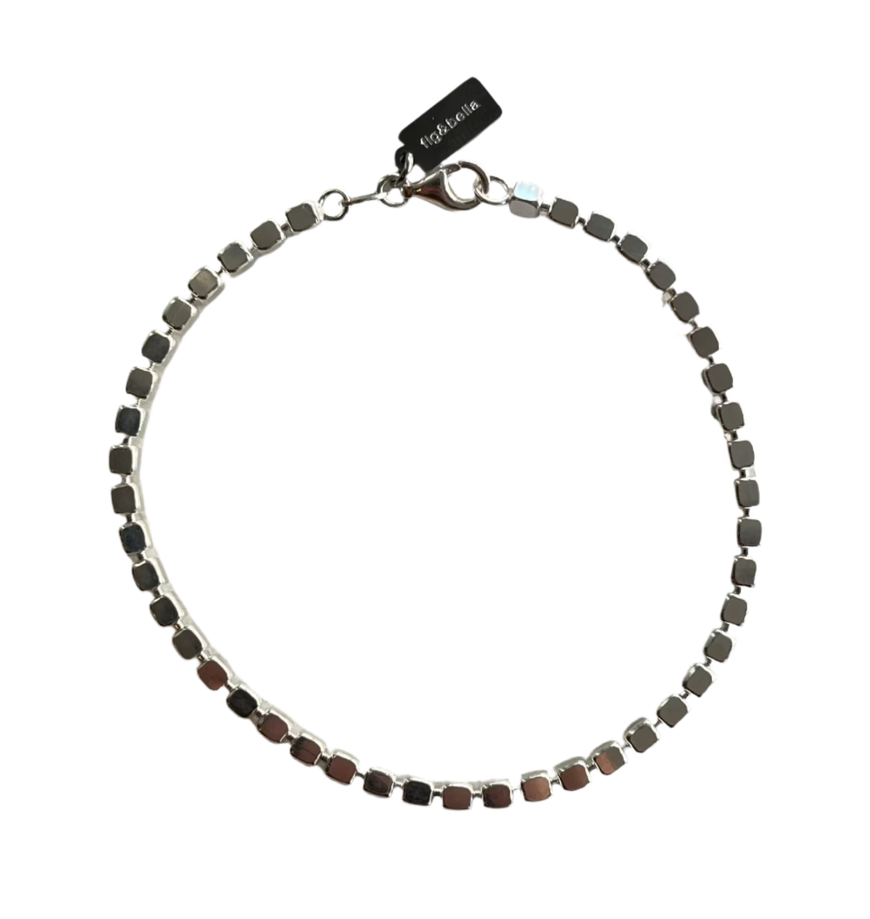 Handcrafted from sterling silver, this refined cube bead bracelet merges contemporary design with timeless elegance. Measuring 6.5 inches, it strikes the perfect balance between understated sophistication and bold geometric appeal. Meticulously created in our Hudson Valley studio, this versatile piece complements any wardrobe and suits both men and women.