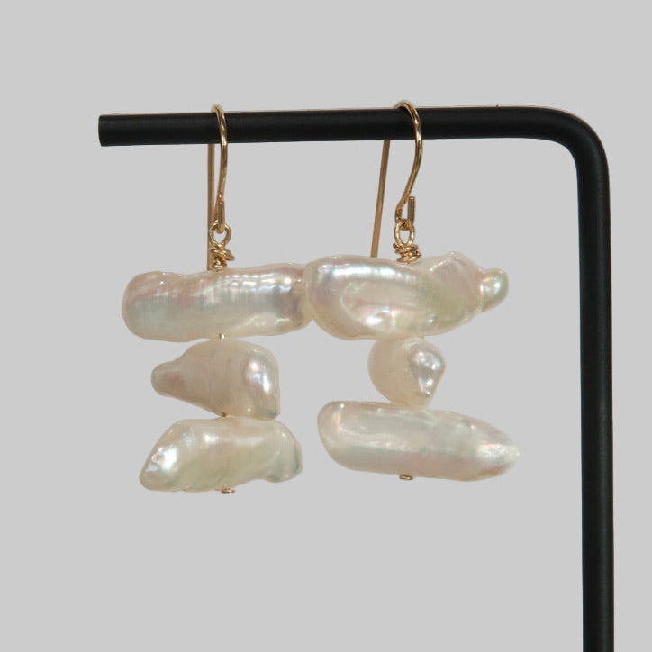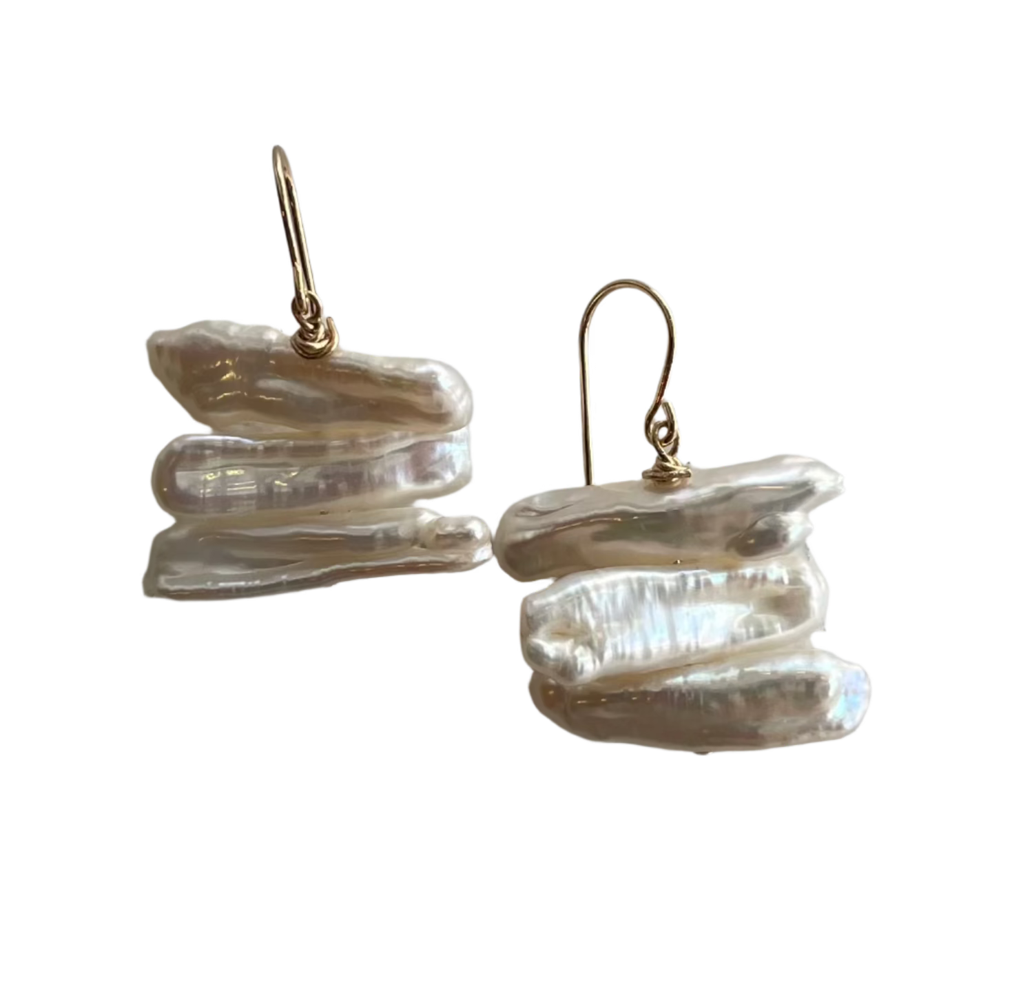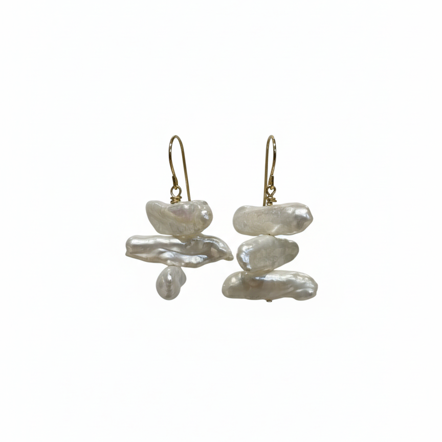 Elegant biwa pearls suspended on delicate 14k gold-fill wires, allowing each pearl to move freely with graceful fluidity. The organic luster of the pearls pairs beautifully with the warm glow of gold-fill, creating a refined accessory that captures light with every subtle shift. Perfect for those who appreciate understated luxury and natural beauty. Pearls move freely on wire. Sold as a pair.