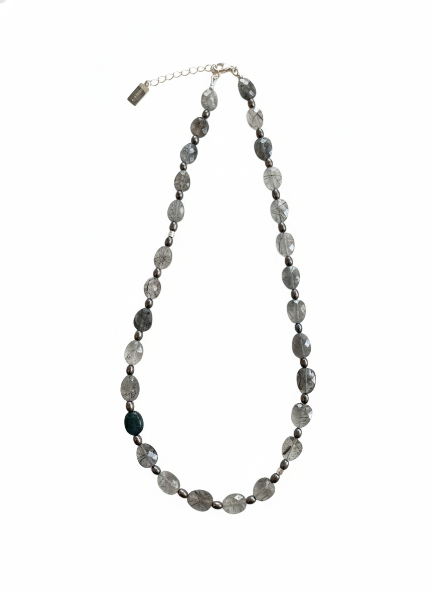 Necklace: Pearl + Rutilated Quartz + Apatite + Vintage Silver