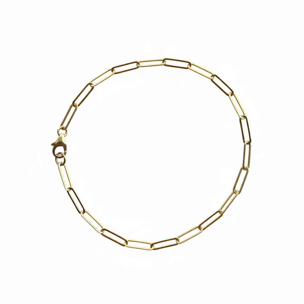 A refined link bracelet crafted in 14k gold-fill, embodying understated elegance and timeless appeal. Its minimalist design offers versatile sophistication, seamlessly complementing any wardrobe with effortless grace.