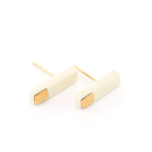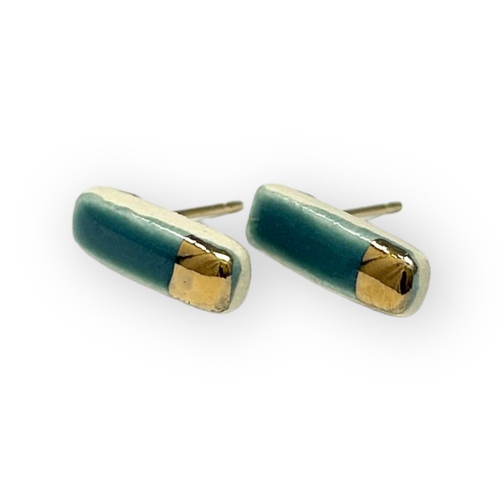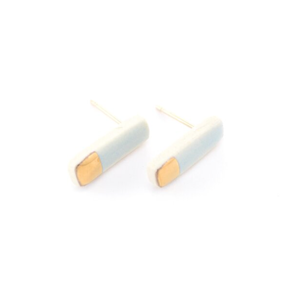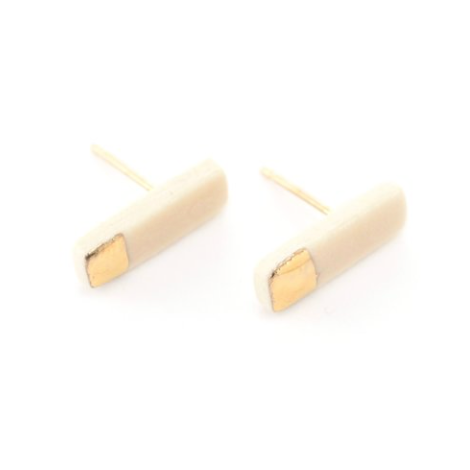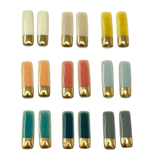 The tiny rectangular bar studs offer a clean geometric look, with straight lines in the color of your choosing, finished with 22k gold to elevate the look.