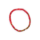 This handcrafted bracelet features a refined combination of coral heishi beads and tiger's eye stones accented with gold fill details, all strung on resilient elastic for effortless wear. The 4mm beads are expertly arranged in an intricate pattern and sized at 6.5 inches. Designed for comfort and elegance, it slips on and off with ease. Made by hand in the USA. Custom sizing available upon request.