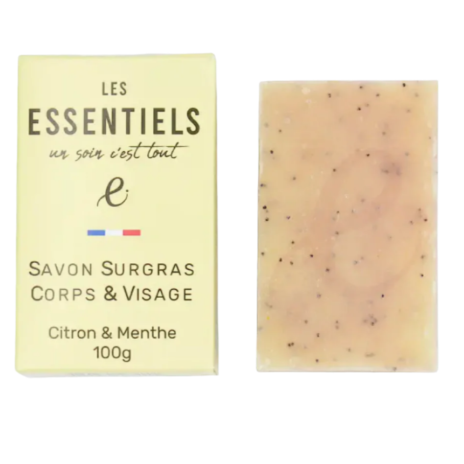 Certified organic and 100% natural soap with lemon and mint essential oils. Recommended for oily skin and hard working hands. Poppy seeds help with exfoliation.