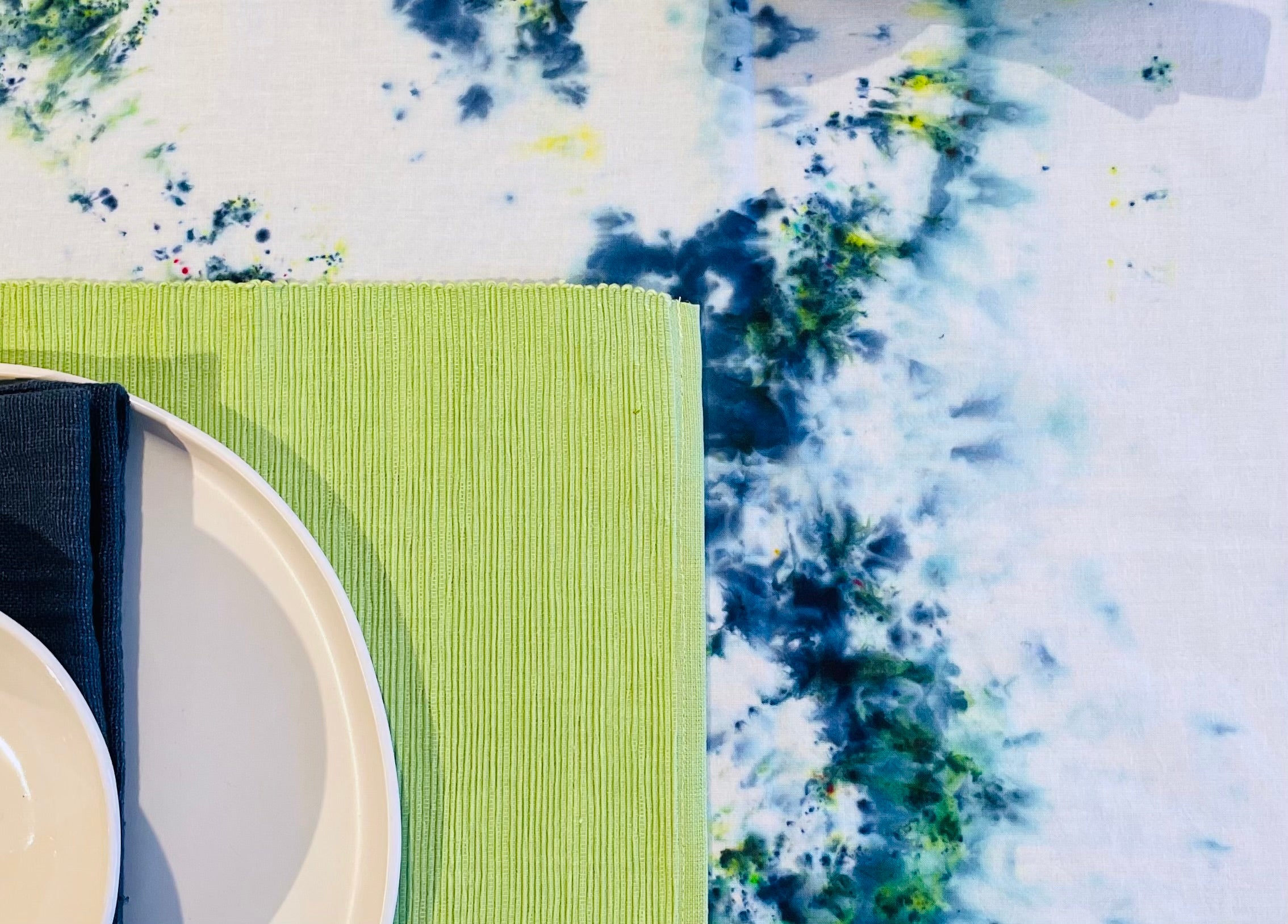 Dress up any meal indoors or out with our hand-dyed tablecloths.