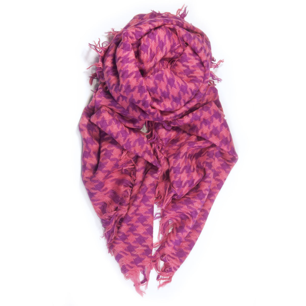 Houndstooth Cashmere Scarf in Fuchsia/Violet