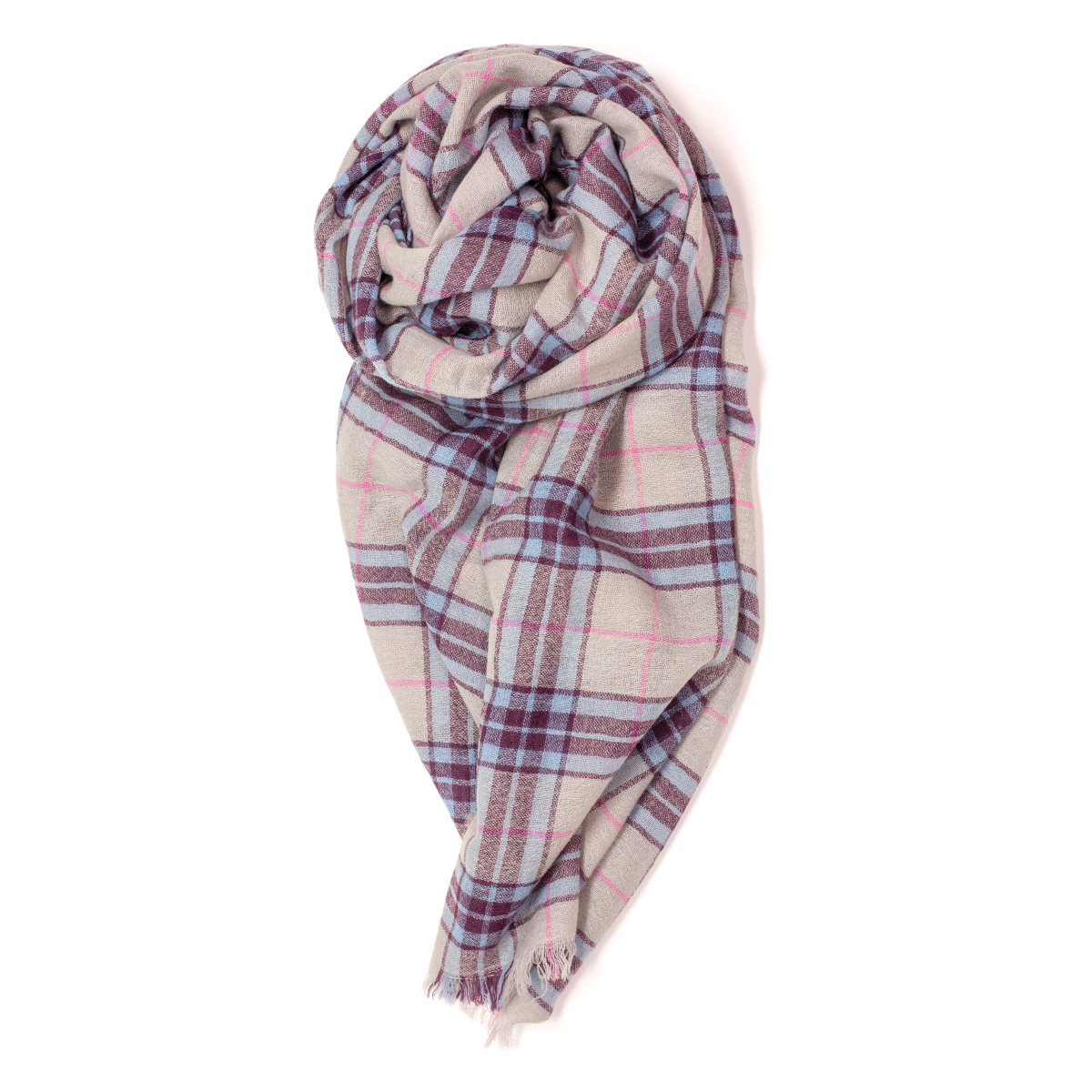 Made of 100% cashmere with eyelash fringe along all sides, our "Plaid Please" style is individually hand loomed in Nepal by a master artisan with whom we work closely to produce the highest quality piece.