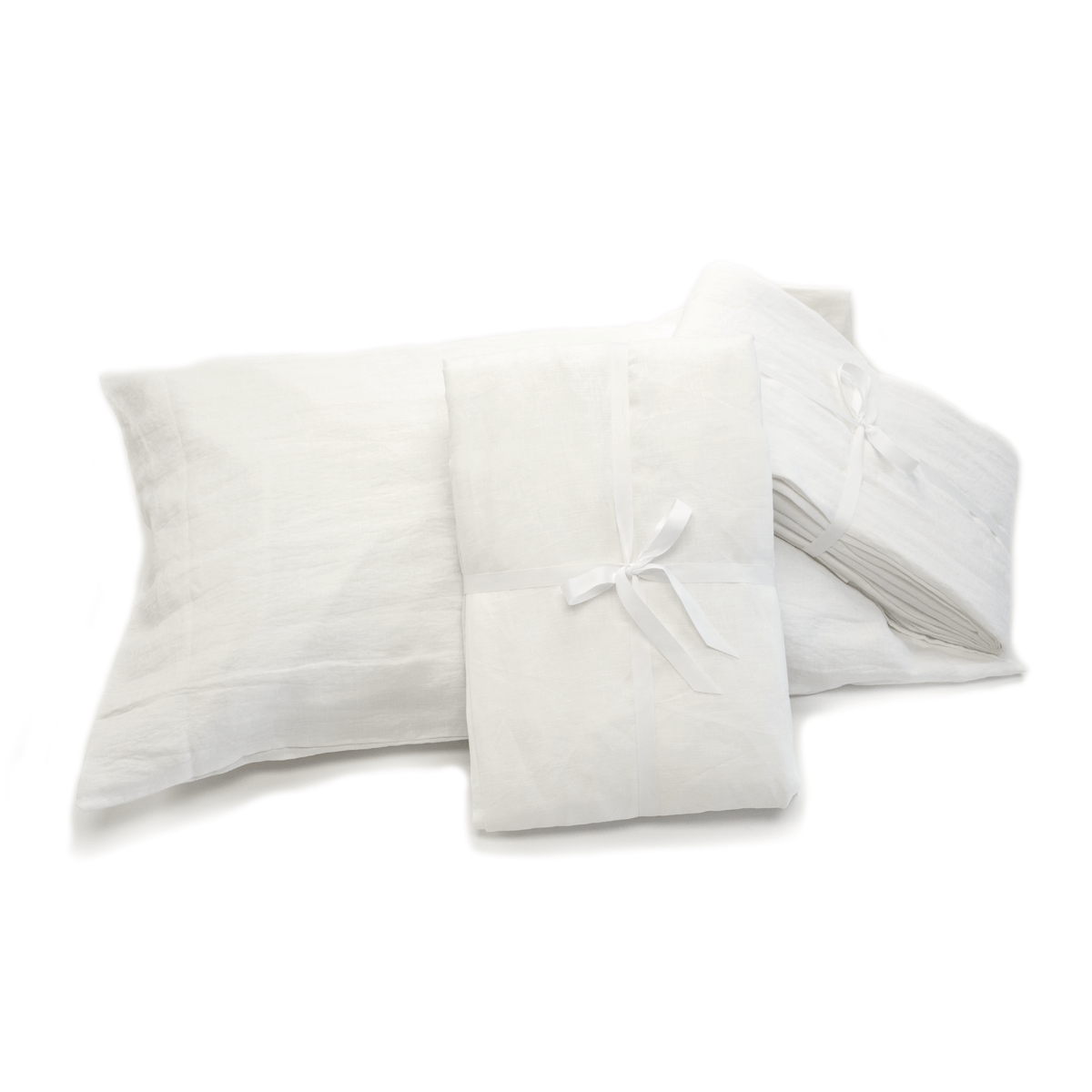Only the best. Enzyme-washed for a rumpled, lived-in softness, our linen bedding will keep you warm in the winter and cool in the summer. Mix and match colors to suit your individual style, or buy same color sheet sets (fitted, flat, and pillowcase pair). Duvet covers feature button closures, and internal tie-downs in all four corners to keep duvets in place. Pillowcases, sold in pairs, are available in standard and king sizes.