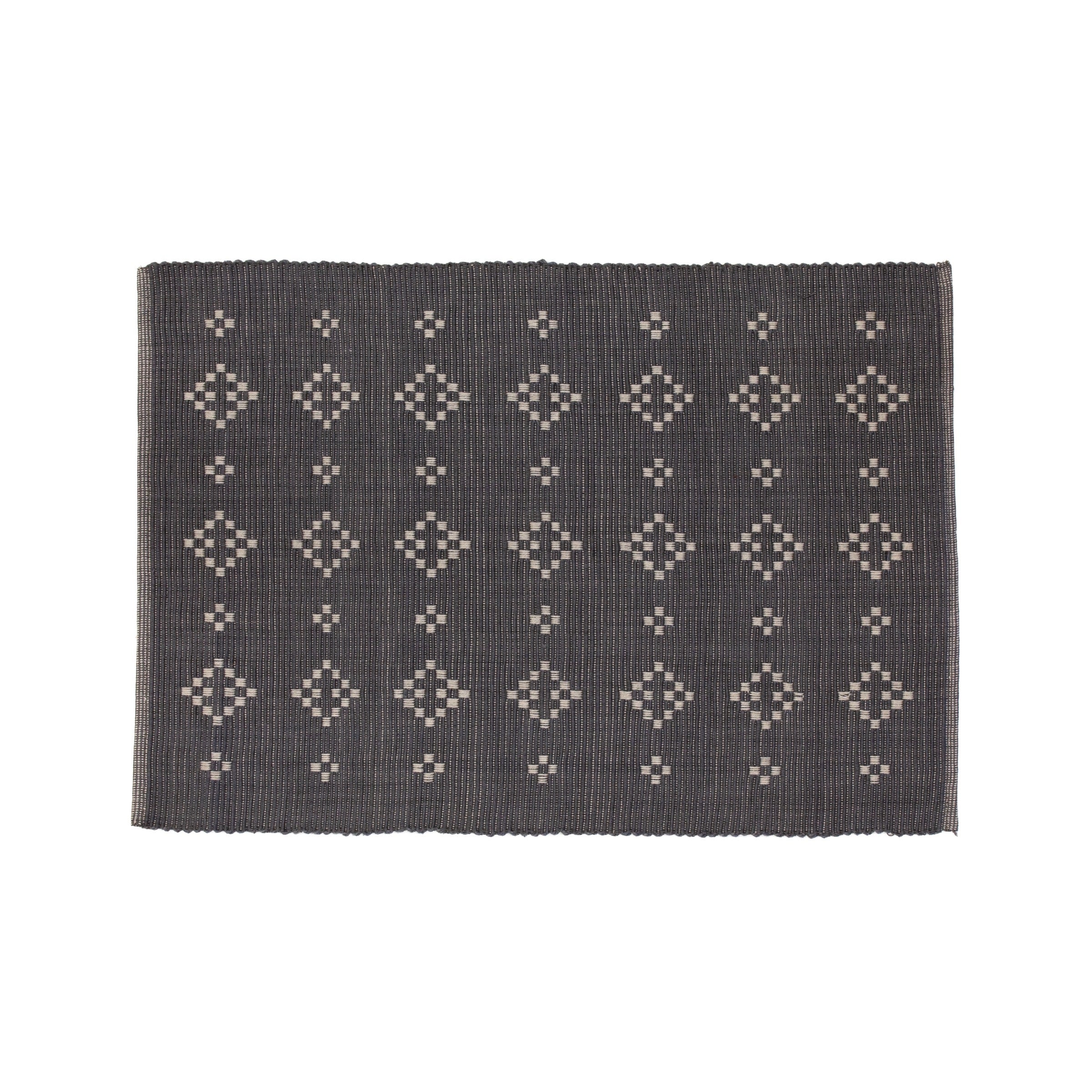 Our Marcel placemat was inspired by embroideries of the Andes. Generously sized at 13" wide and 19" long, it is the perfect accompaniment to any outdoor table-scape. Reverses to ash grey mat with charcoal grey embroidery detail.