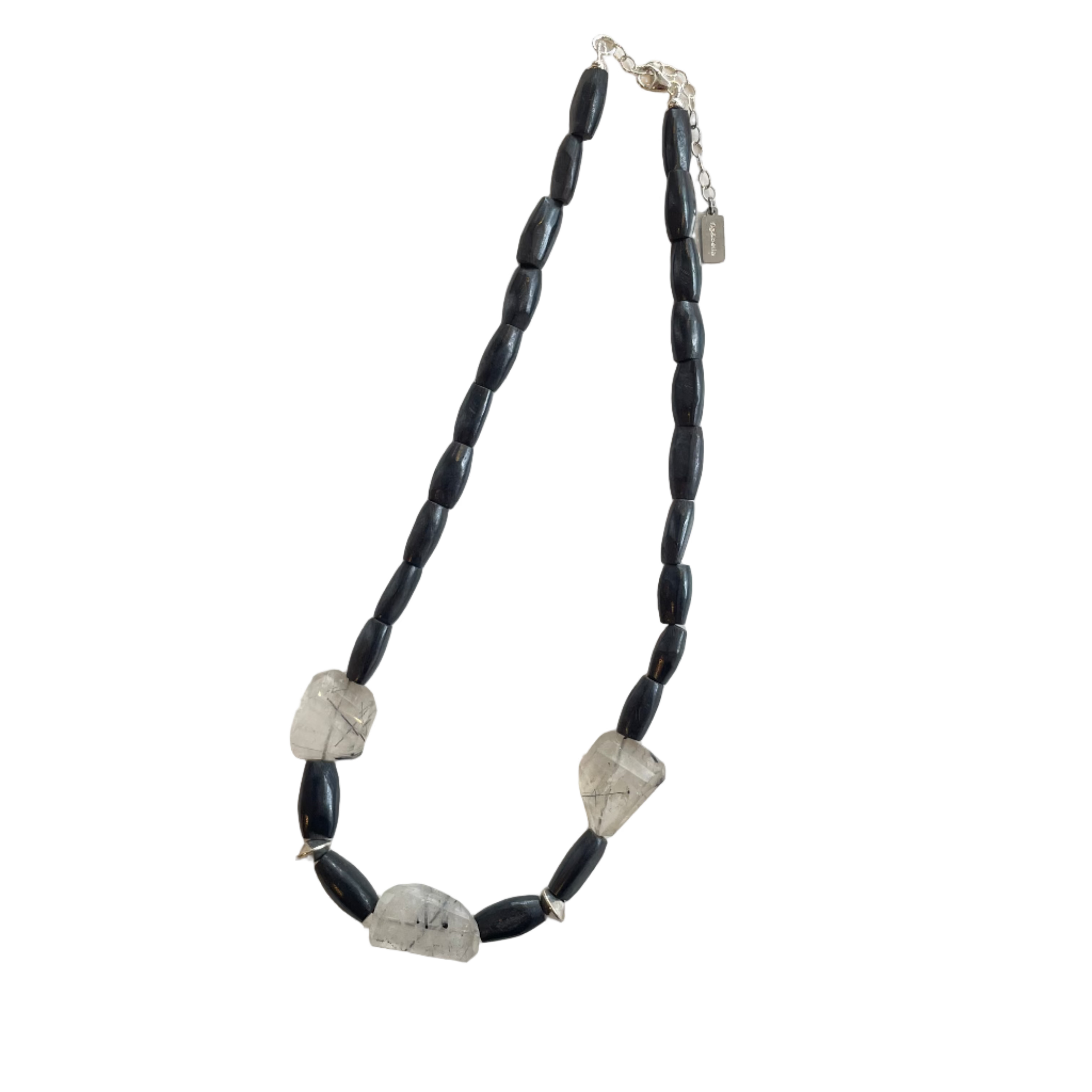Necklace: Rutilated Quartz + Vintage Silver + Horn