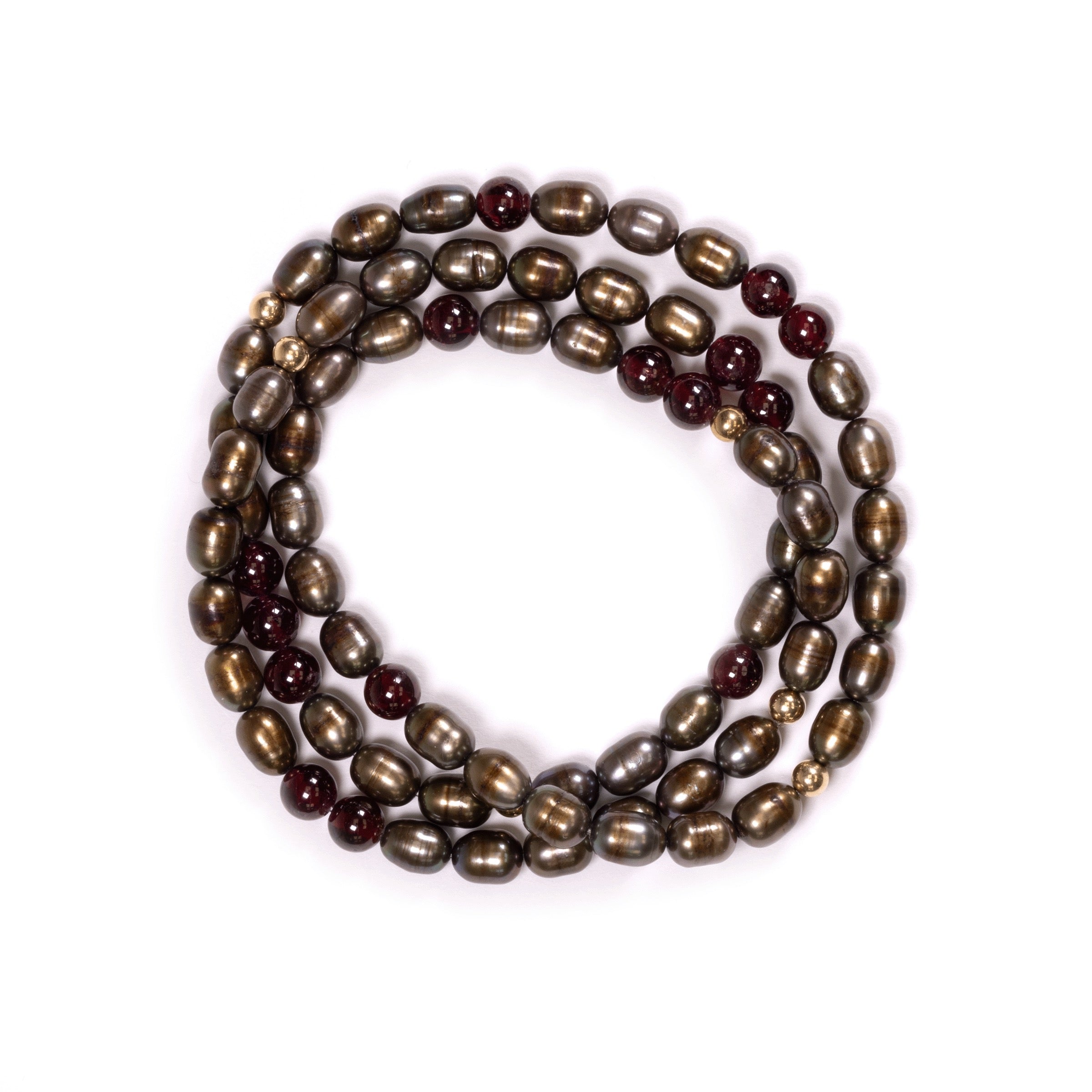 Bracelet, Triple Wrap: Garnet + Bronze Pearls